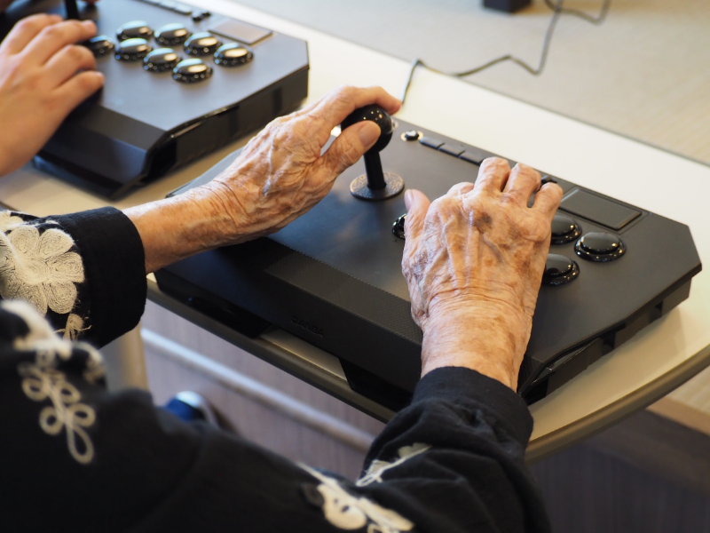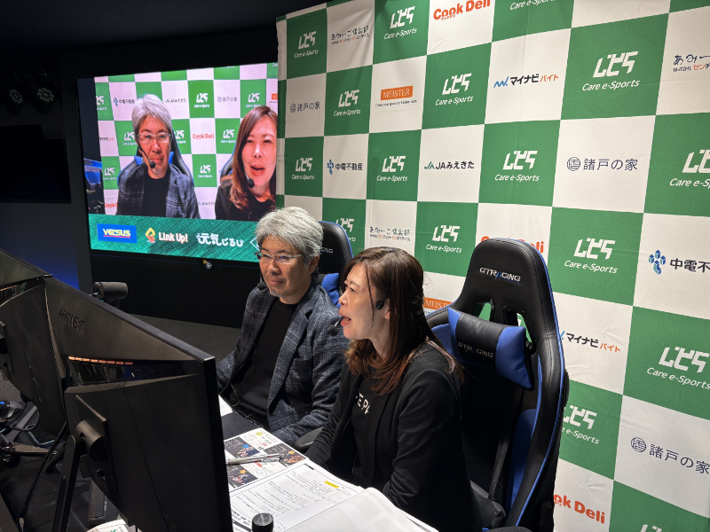 今大会は「鉄拳8」のトーナメント戦で、高齢者がアーケードコントローラーやパッドを使用しキャラクターを選んで各施設からオンラインにて対戦しました。それぞれ選手の呼び込みは、レニー・ハートさんにお願いし、とてもインパクトある選手コールで大変盛り上がりました。
