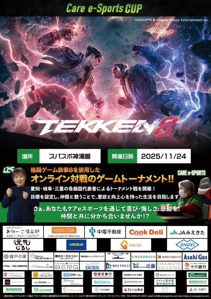 2025年11月24日に「第12回ケアeスポーツCUP-TEKKEN8-」を開催いたしました。 今大会開催にあたり、ご協賛いただきましたパートナー企業様、ご参加いただいた選手の皆様、準備・運営にご尽力いただきました関係者の皆様に、心から感謝を申し上げます。